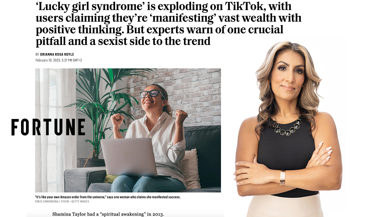 O, Royle (2023, February 10th). ‘Lucky girl syndrome’ is exploding on TikTok, with users claiming they’re ‘manifesting’ vast wealth with positive thinking. But experts warn of one crucial pitfall and a sexist side to the trend [Blog Post] Retrieved from https://finance.yahoo.com/news/lucky-girl-syndrome-exploding-tiktok-152120013.html